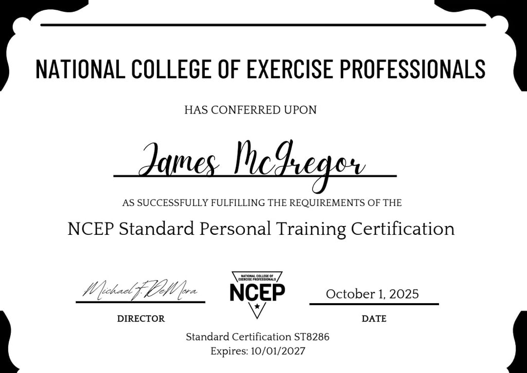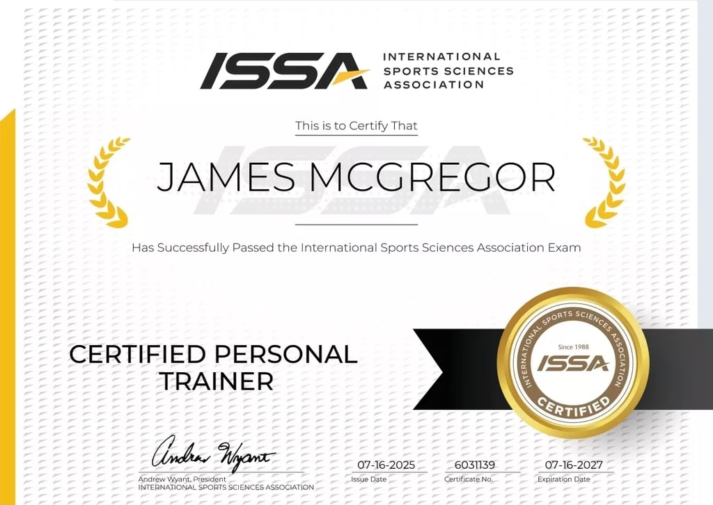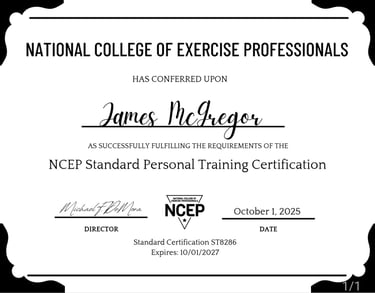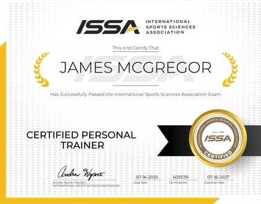 Welcome! I'm James McGregor, an ISSA and NCEP Certified Personal Trainer dedicated to helping people like you achieve their ultimate health and fitness goals.